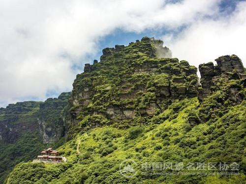 贵州铜仁梵净山原名“三山谷”,得名于“梵天净土”,是一座避暑名山和佛教名山。梵净山上有庞大的寺庙群,主峰的金顶上,在一座高耸入云的巨石上,还有一座古刹,吸引着不少游人们,不惜手脚并用,费了九牛二虎之力才能上去,梵净山因此被称作是佛教第五大名山,也给这座古老的山峰添上了神秘的色彩,梵净山还拥有丰富的野生动植物资源,有黔金丝猴、珙桐等珍稀物种。2015年被列入预备名单,2018年确定申请世界自然遗产。