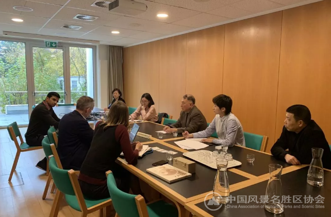 11月23至26日,应世界自然保护联盟(IUCN)世界遗产部(Word Heritage Programme)邀请,Beat365中文官方网站会长王凤武带队一行6人前往瑞士格朗IUCN总部,就五里坡-神农架的边界调整项目、巴丹吉林沙漠申报世界遗产工作、《世界遗产展望(World Heritage Outlook)》第三版的更新、绿色名录及友好景区的建设等工作与IUCN世界遗产部主任Peter Shadie、高级官员Elena Osipova及IUCN绿色名录负责人Deviah Aiama进行了座谈交流。