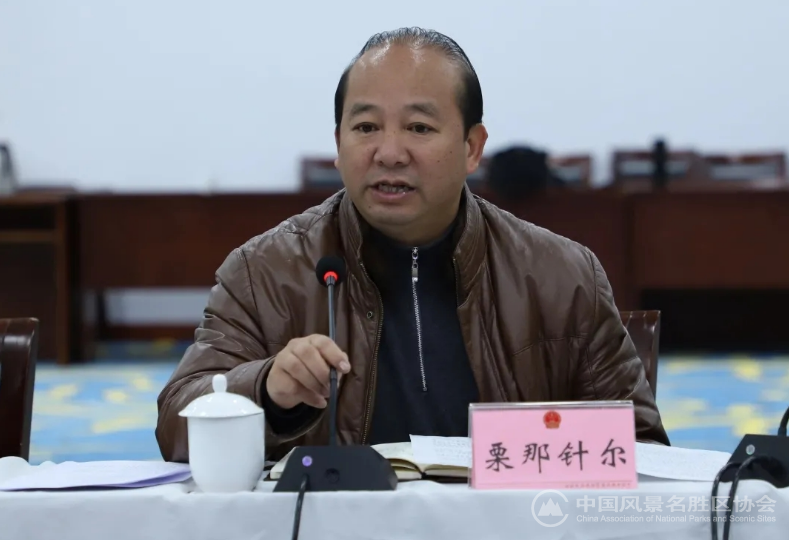 栗那针尔对王凤武会长一行到峨边指导旅游发展表示欢迎。他指出,黑竹沟是大熊猫的乐园、杜鹃花的王国、珙桐树的世界,是峨边的一块瑰宝。在历届县委县政府的高度重视下,秉行高位保护、高位推动、高位发展的理念,科学、生态、环保的开发黑竹沟景区,积极寻找企业投资合作,签订战略合作协议,相信峨边的旅游发展会越来越好。