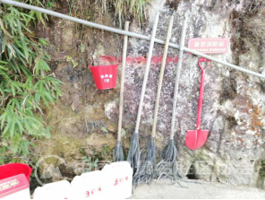 3.为做好森林防火工作,在景区内设置了许多微型消防站,配备基本的灭火器材和桶装水。
