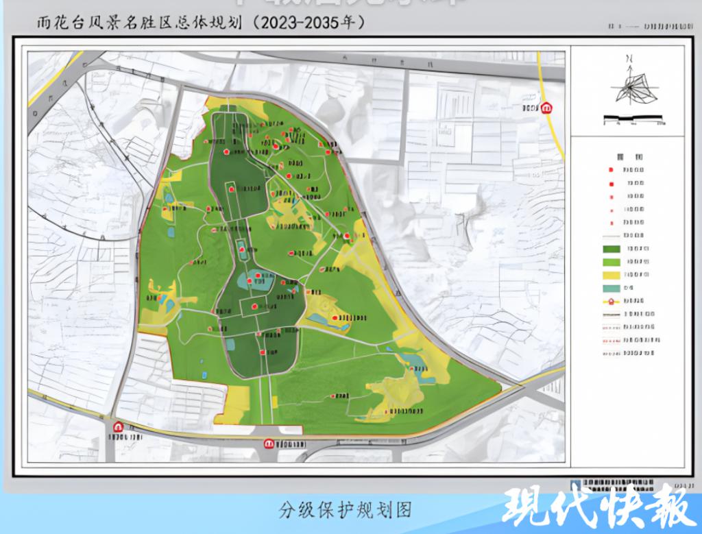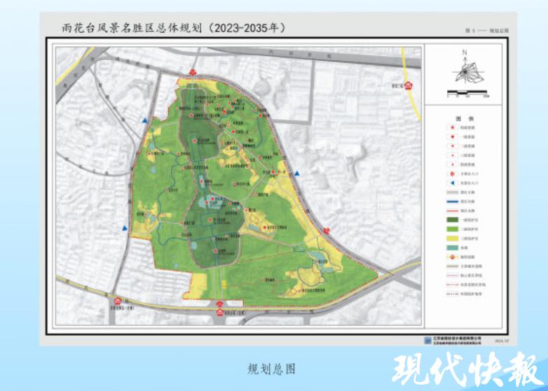 近日,南京市规划和自然资源局对雨花台风景名胜区总体规划 (2023 — 2035 年)进行了公示。现代快报记者了解到,雨花台风景名胜区设置三级保护区、五大景区游赏区。规划停车位 1035 个。