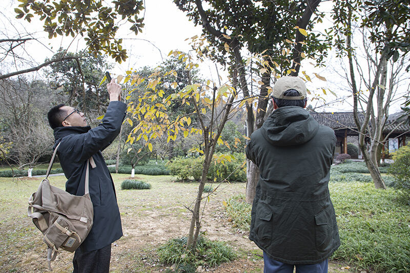 在灵峰探梅景区的明星林里,记者还惊喜地发现了几株梅花树已经迫不及待地零星开放,给寒冷的冬季增添一丝浪漫气息。现场也有不少游客手持相机、手机,捕捉着梅花的美丽瞬间。