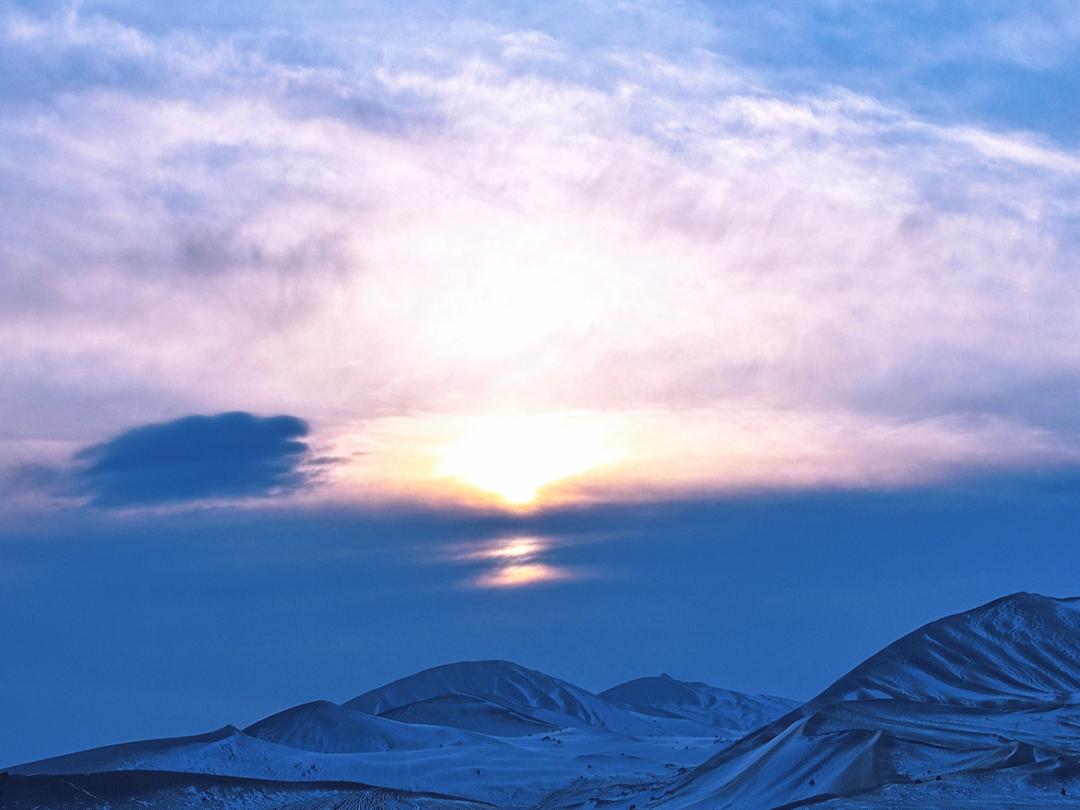 雪后鸣沙山月牙泉 银装素裹美如画
